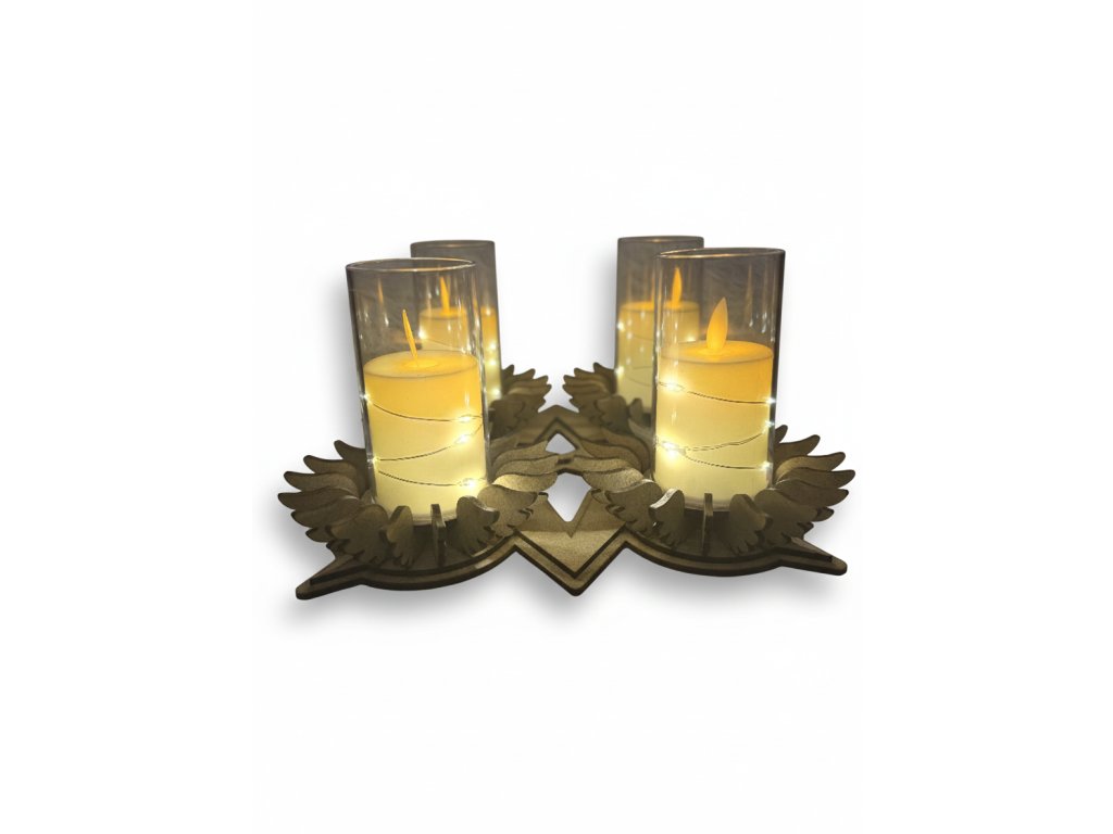 Hledáte adventní věnec, který nebude po jedné sezóně na vyhození? Tento svícen z přírodního dřeva vzniká v malé dílně laserovým řezáním a ručním skládáním do prostorového 3D tvaru. Čtyři kruhové podstavce jsou rozmístěny kolem hvězdy, takže svíčky krásně rámují celý stůl a vytvoří výraznou, ale pořád elegantní vánoční dekoraci.