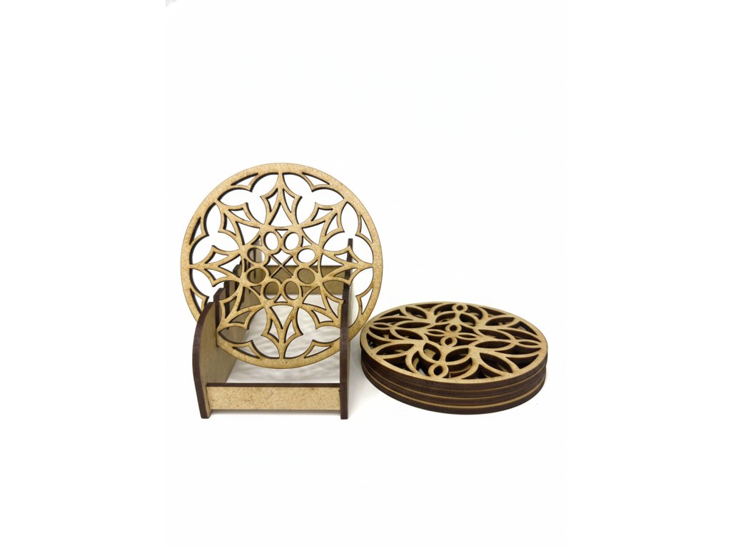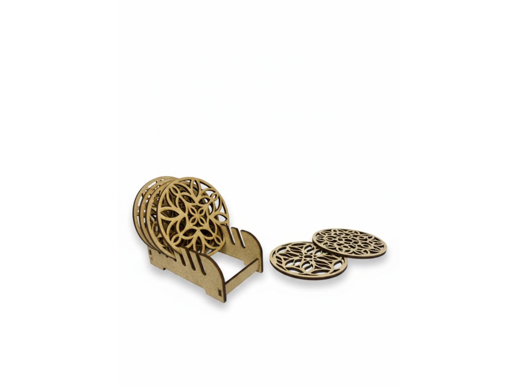 Elegantní sada kulatých dřevěných podtácků s dekorativním prořezávaným motivem, vyřezaná laserem z kvalitní překližky. Podtácky chrání stůl před skvrnami od nápojů a zároveň slouží jako designový doplněk – hodí se do moderního i rustikálního interiéru, k dřevěnému nábytku i k minimalistickým kuchyním.